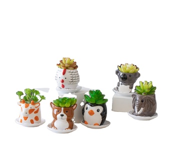 Оптовая продажа, новый дизайн, миниатюрные милые маленькие керамические горшки для растений в виде животных, комнатный горшок для суккулентов