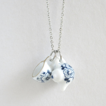 Thời trang màu xanh và trắng sứ Vòng cổ handmade chén gốm quyến rũ tách trà trang trí mini quà tặng cho phụ nữ