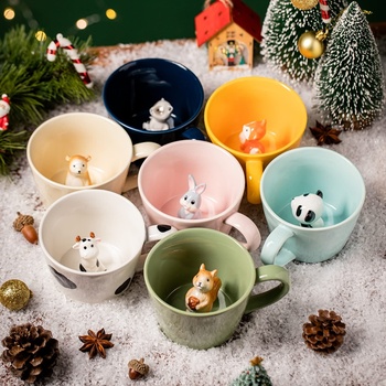 Thiết Kế Mới Con Chó Vật Nuôi Cốc Thỏ Cáo Bò Cốc Gốm Ẩn 3D Động Vật Bên Trong Cốc Phim Hoạt Hình Handmade Mug Với Động Vật Hình Quà Tặng