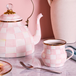 MACKENZIE-CHILDS men Mug hồng và trắng hồng kiểm tra men Cup cho trà nóng độc đáo drinkware